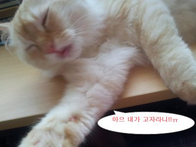 이러고 자는 경우는 흔치 않을텐데 말이죠..... 역시 넌 개냥이 아니 인냥이야!!