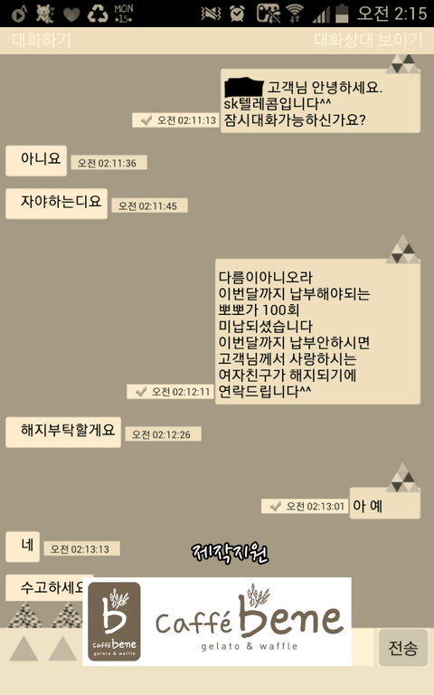 나도 달달해보고 싶어서 뽀뽀미납문자 보냈는데,.....