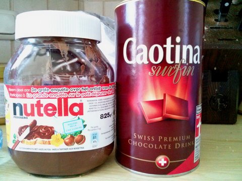 한개는 유명한 누텔라이고, 한개는 핫쵸코 만들기나 초코케익 만들기용 초코라루 카오티나 입니다.