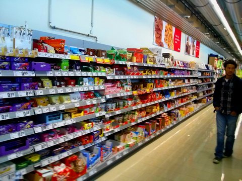 다른 수퍼마켓이지만, 보통 초컬릿을 파는 코너는 아예 한줄을 다 소비할 정도로
