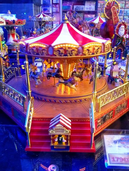 크리스마스 선물로 만들어진 작은 미니어쳐 회전목마. 불도 켜지고 돌아가기도 하고 음악도 나와요.