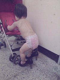 인형 유모차에 굳이 꾸역꾸역 타고 안전바까지 채움 ㅜㅜ