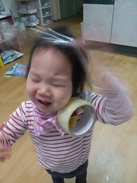 5CM테잎을 머리에 휘감고 나타남..
