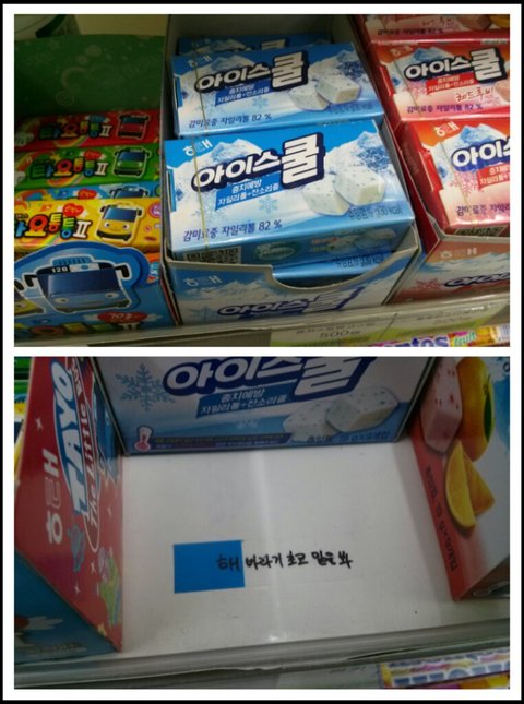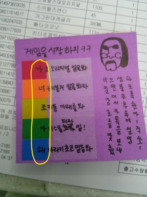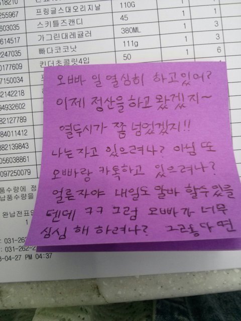 그러다 교대를 하기 위해서는 꼭 봐야되는 계산대에 이상한 게 붙어있는 걸 발견함 ㅋㅋ