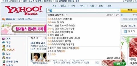 야후의 자동완성..
