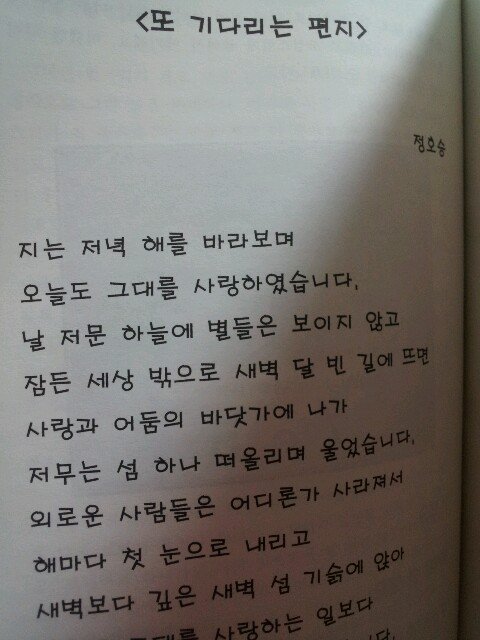 지나가는 말처럼 했던 정호승 시인이 좋다는 말을 깨알같이 기억하여 군데 군데