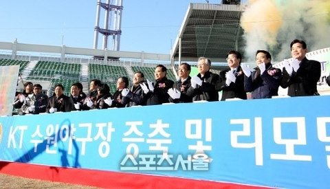 만들어야 한다는 의지로 이석채 회장은 수원 야구장 증축과 리모델링 기공식에 참석하며