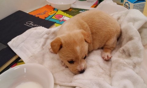 적응하는 며칠 동안 사료 조금씩 불려 하루 네 번, 간식으로 우유 조금씩,