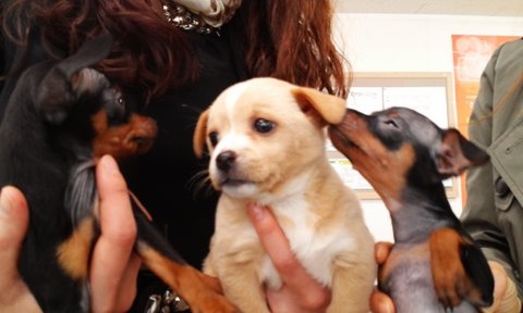 저기 밑에 다른 강쥐들 만나는거요 .. 걔네도 완!전 애기에요 ㅋ 우리봄동이 반만한 크기?