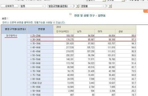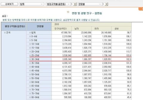현재24-38세 결혼적령기죠 결혼을 가장많이하는 연령의 남녀성비는 102로 오히려 여자가 많아요;;