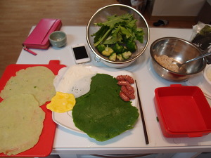 - 진한 녹색부분 : 부추부침개 (부추+밀가루+소금을 갈아서 만듬)