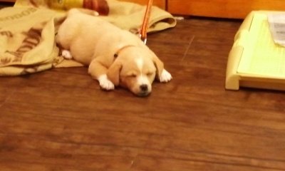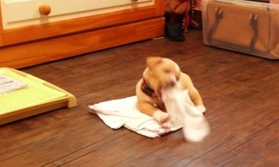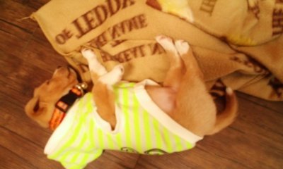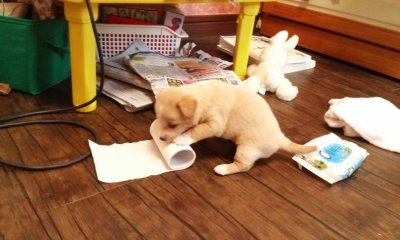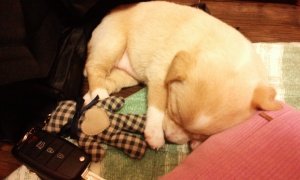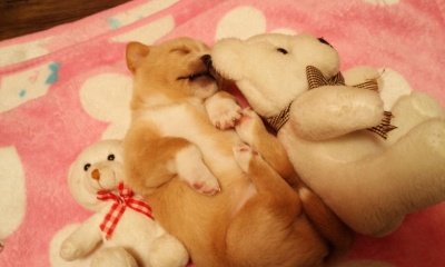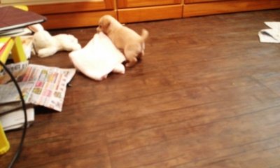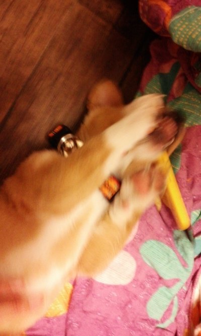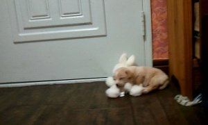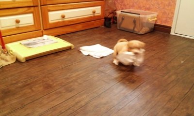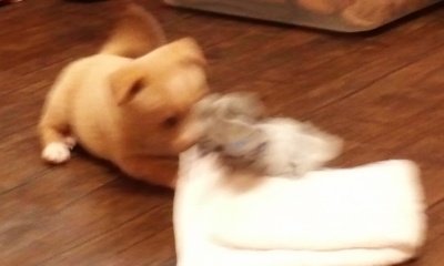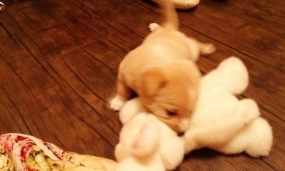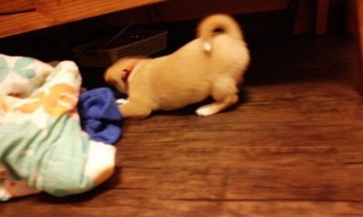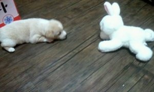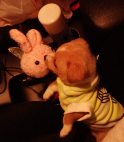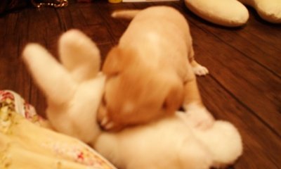 (한달 됐을 때 뒷 다리 힘이 없어서 잘 걷지도 못 할 때에요.. 인형이랑 대치중?;ㅋ)