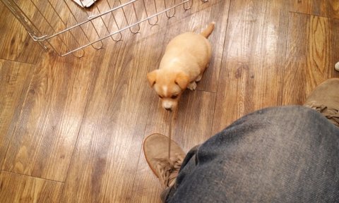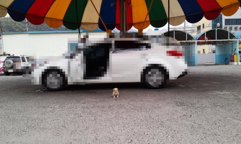 2주전만 해도 소심하고 겁이 많아서 귀만 까딱까딱 하는 중 .. (세차하러 와서 수건빨고있는 중ㅋㅋ)