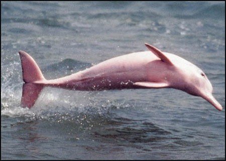 분홍 돌고래는 몸의 신가한 색깔과 미소가 널리 알려져 있음. 사람들 사이에서는 행운의 상징이라고