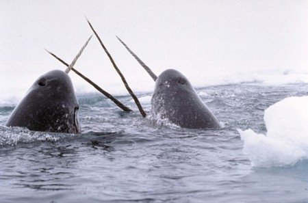 북극에 사는 고래류로 뿔이 드릴 모양과 비슷함. 특이하게 이 뿔은 한 개의 어금니가 길다랗게 자라서