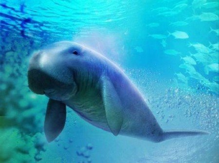 해초를 뜯어먹고 살고 몸길이는 3m나 됨. 약간 하마를 닮은 것 같으면서 고래를 닮은 것 같기도함.