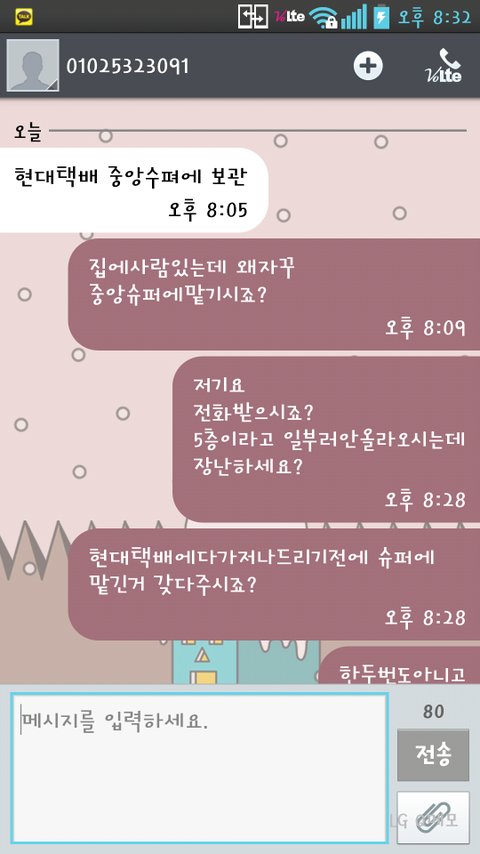 무조건 집 앞 슈퍼에 맡긴다음에 문자를 이렇게 보냅니다.