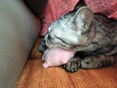 거기에 아기손수건 올려주니 침대로 쓰심 ㅎㅎ
