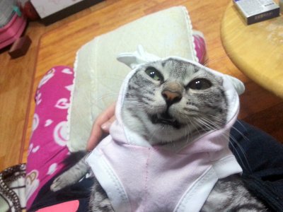 토끼후드 옷을 입혔는데 저 상태로 반항하다가
