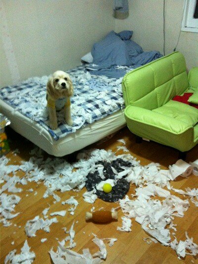 유기견 센터에서 데려온 산이와 함께 더욱 심하게 난장판을 침 ㅋㅋㅋ