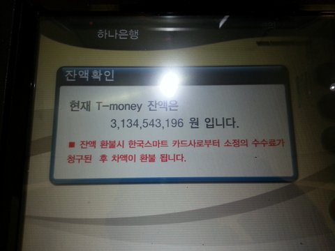 아..저 이거 예전에 신문에서 한번봣는데 에러 난거래요.. 이렇게 된 사람이 여러명있었는데.. 어떤사람은 26억이 충전되서 그날 바로 편의점가서 삼백만원어치를 삿다나.. 근데 이거 바로 신고해야된다네요 자기 재산이 아닌데 막 쓰는거라 이것도 절도죄에 해당된다고 읽었었는데 ㅋㅋ..