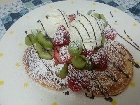 이것은 ~ 팬케이크!!! 반죽 직접 만들어 직접 만든 아이스크림 올려 먹었어요~