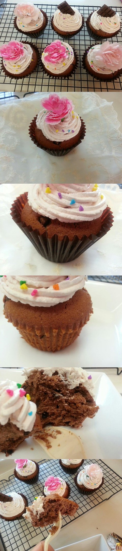 초코머핀에 크림치즈와 생크림 라즈베리잼을 이용해 프로스팅 해봤어요 ㅎㅎ