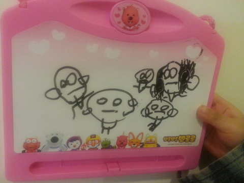 금비가 그린 가족사진 ㅋㅋ 지금 4살인데 얼마나 야무진지 월반해서 5살언니오빠들이랑 수업을 받는데