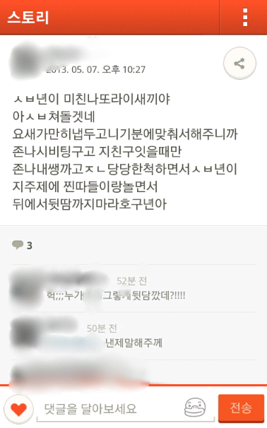 앞에서 얘기못할꺼면 그냥 가만히있던가 진짜 카스드갈때마다 내가다짜증나네 여러사람보는데 저런글싸질러놓으면 보는사람은 기분좋겠냐? 댓글도 가식개쩌네 작작올려 한심하