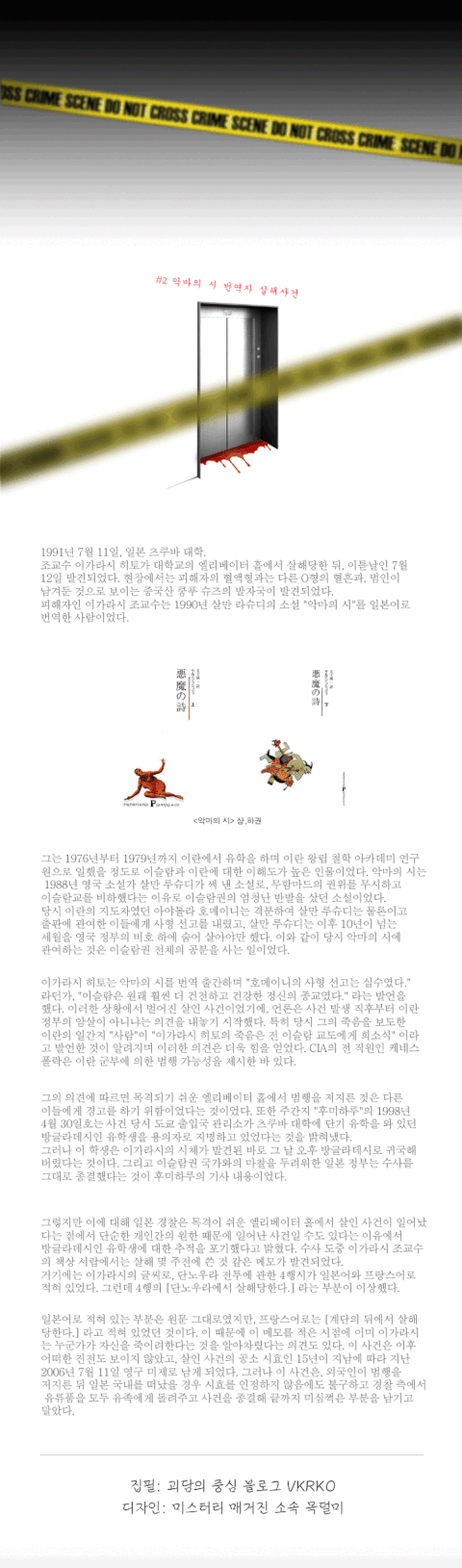 그렇지만 이에 대해 일본 경찰은 목격이 쉬운 엘리베이터 홀에서 살인사건이 일어났다는 점에서