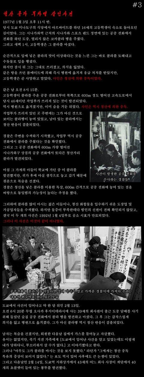 경찰은 청산을 넣은 콜라를 이용한 독살 600M 간격으로 공중전화에 놓여있는 점을 바탕으로 동일범