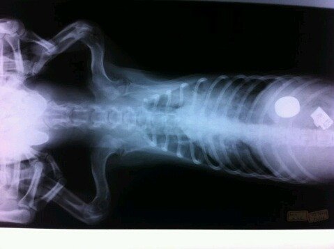 호흡이 약하고 뱃속에 이런 쇠덩어리들이 있어서 살수없을거라고..