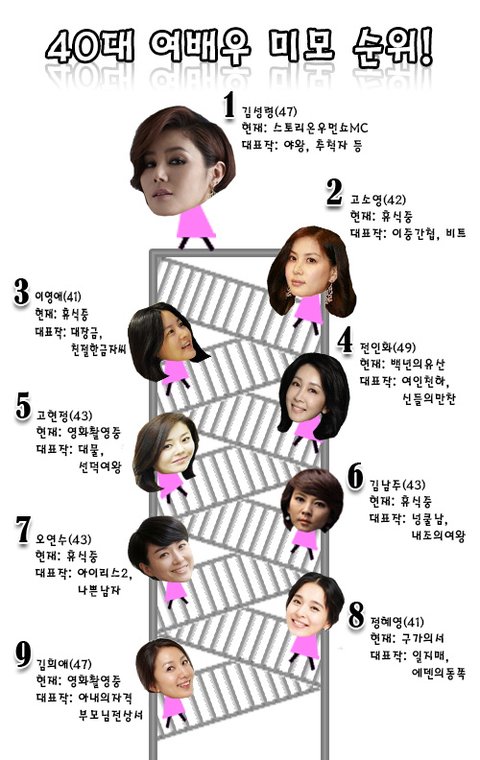 어느 리서치기관에서조사한 40대 여배우 미모순위라고 하는데..