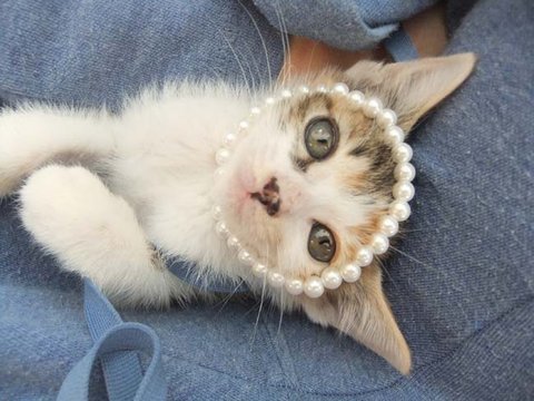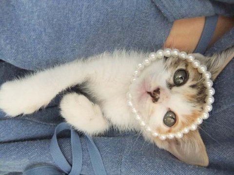 내 진주팔찌가 우리야옹이 얼굴싸이즈랑 딱 맞네요