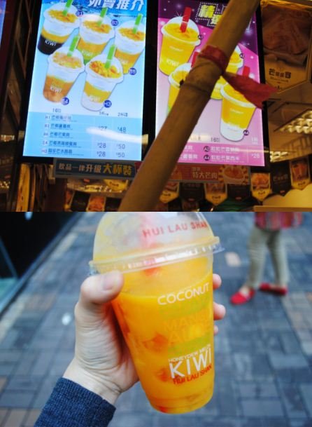 우선 저는 홍콩에 도착하자마자 허유산 망고쥬스를 먹었어요.