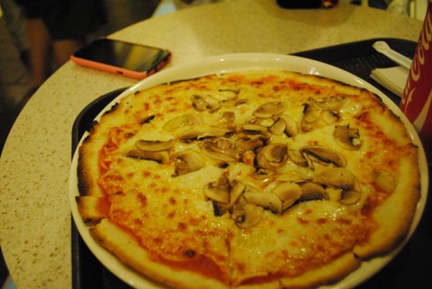 빵은 약간 베이글같은 느낌이고, 안에 치즈랑 버섯이랑 양파랑