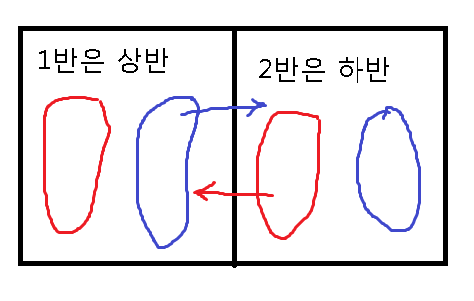 암튼 그림으로 치자면 1반은 상반으로 정하고 2반은 하반으로 정해놓음