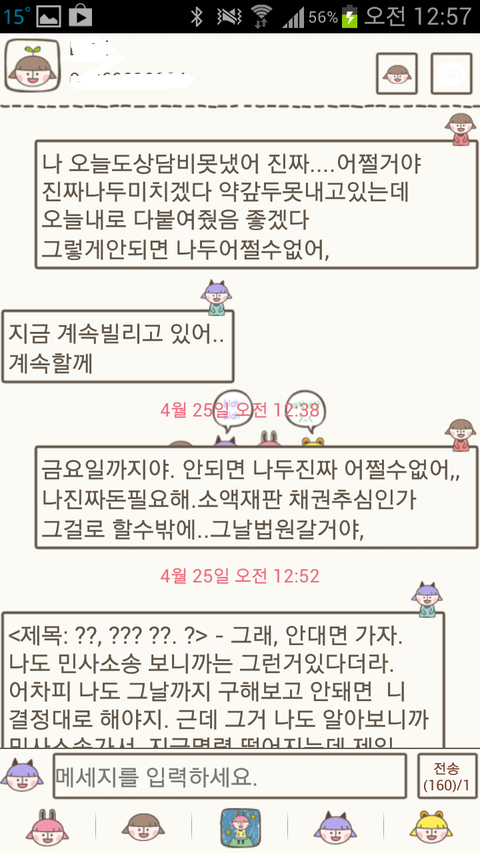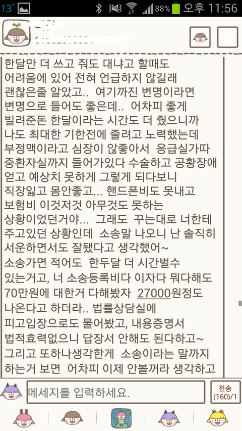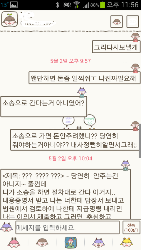 그래서 카톡으로 돈이있으면 있다없으면 없다 어떻게 하겠다 무슨말이라도 있어야 하는거 아니냐고 했는데