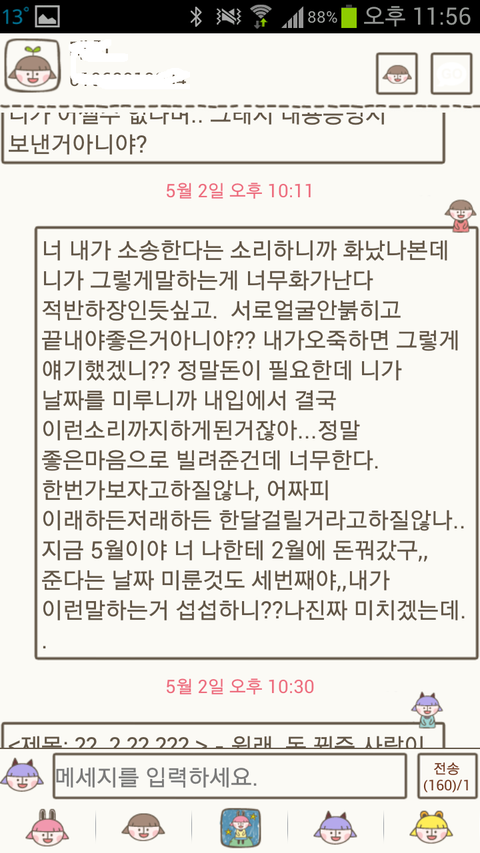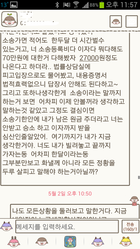 알았다고 꼭 갚으라고 ^^; <--이거 붙여서 문자했는데 답장이 없었어요.
