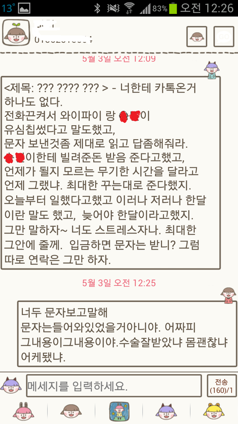 수술잘했냐고..몸은 괜찮냐고..어케됐는지 답장좀 주라고 문자했는데..씹혔어요.