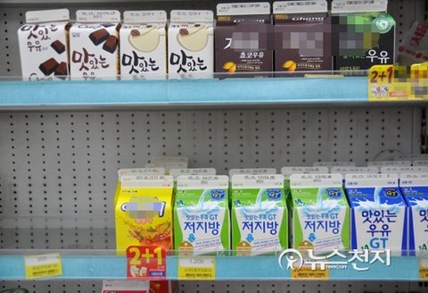 ▲ 8일 서울 시내 한 편의점 매대에 진열된 남양유업 제품이 평소보다 적게 판매된 상태로 남아 있다. ⓒ천지일보(뉴스천지)