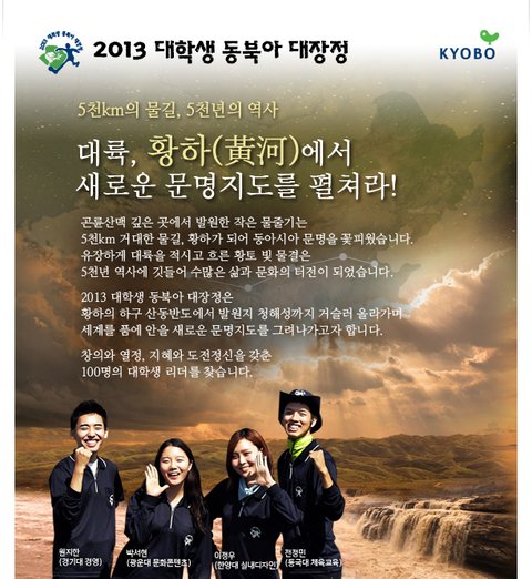 대산문화재단(이사장 신창재)과 교보생명이 2013 대학생 동북아 대장정의 참가 신청을 받는다.