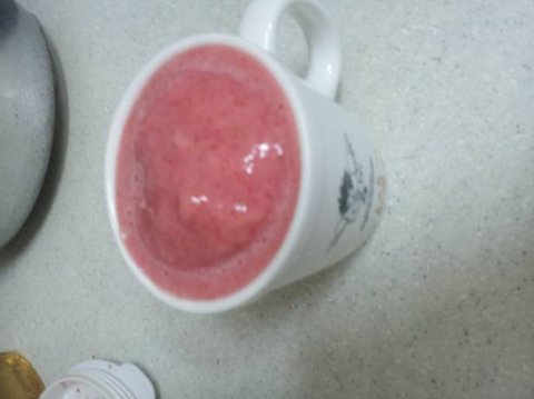 딸기 쉐이크에요 얼린딸기에 시중에 파는 요구르트(그냥 요구르트)를 넣고 갈아주시면 새콤달콤 정말 맛있어요 우리동생이 흡입했어요.. (나도 한입만....)