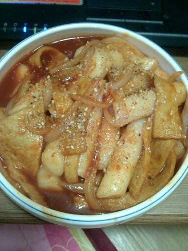 고추장오뎅볶음 이에요 되게 매워보이는데 되게매워요 .. 매운걸 잘못먹는데 ..마침 언니가 있네요