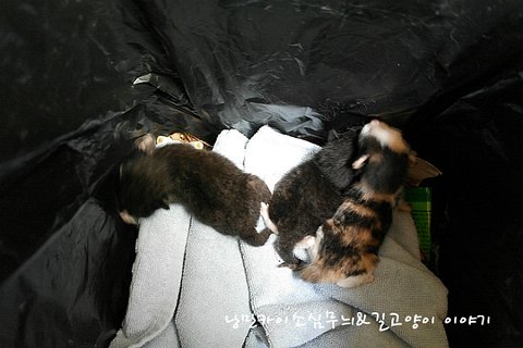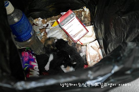 그 틈에 들여다본 쓰레기통 안에는 갓 태어난 아기 고양이가 네마리.....