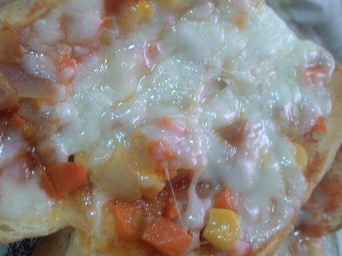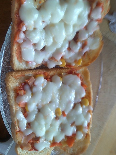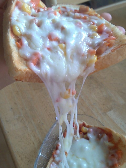 이렇게 치즈가 잘녹아서 맛난 식빵피자가 완성됨.