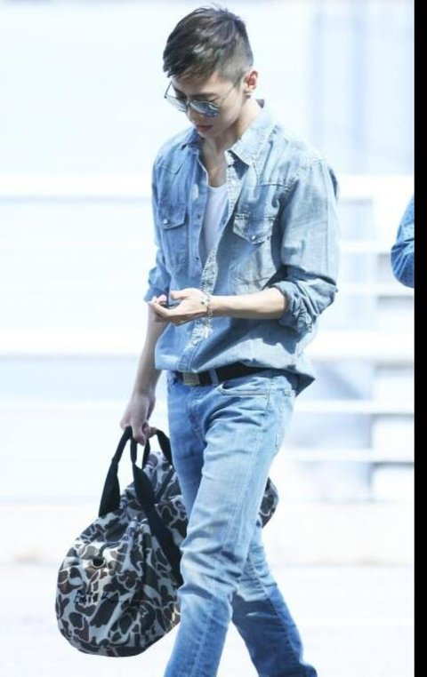 위아래로 깔맞춤한 청청패션에
