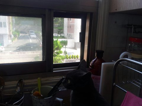 (보이진 않지만 또 고양이가 밖에 구경하그 있음 ㅋㅋ)