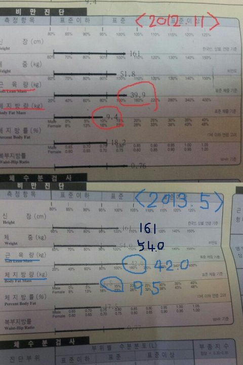 근육은 늘 체중의 40 키로대를 유지합니다'