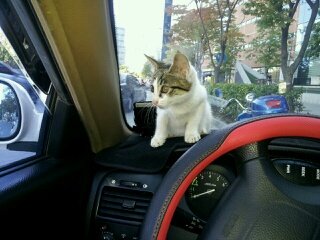 잠시 자동차 문을 열어둔 사이.. 애기고냥이가 무임승차를 한거죠 ~~~